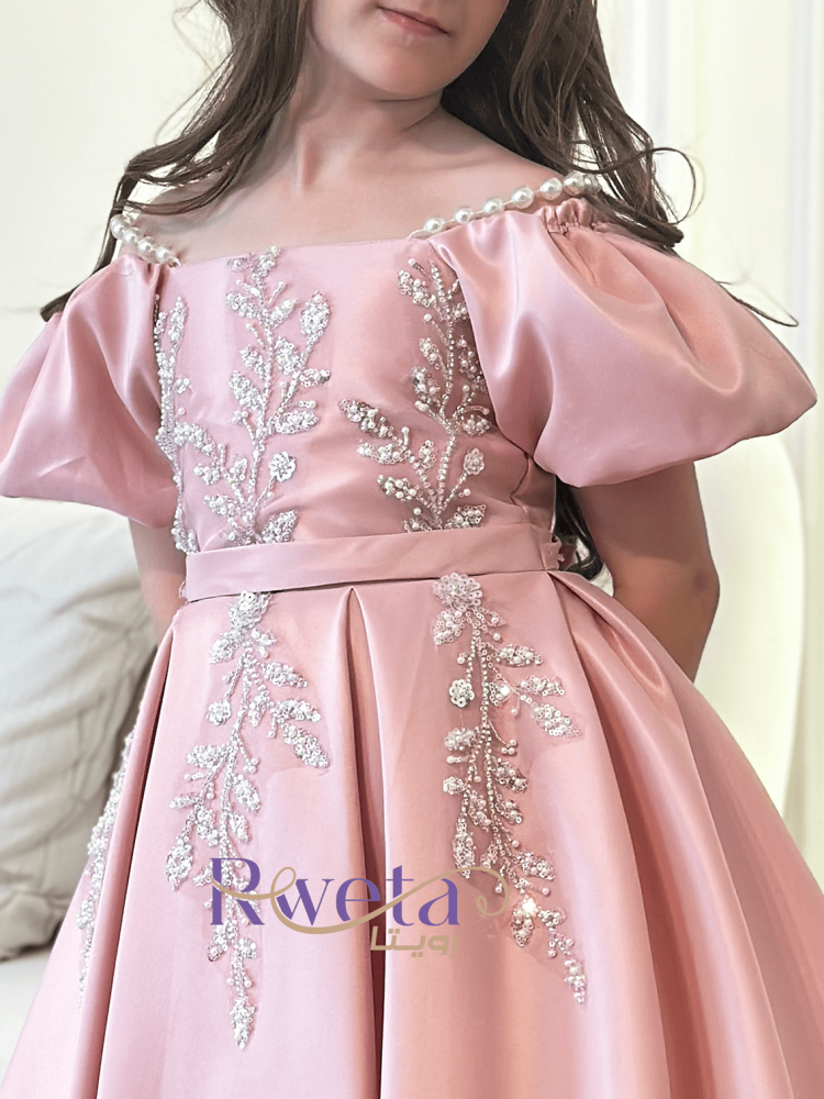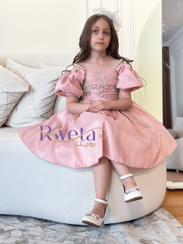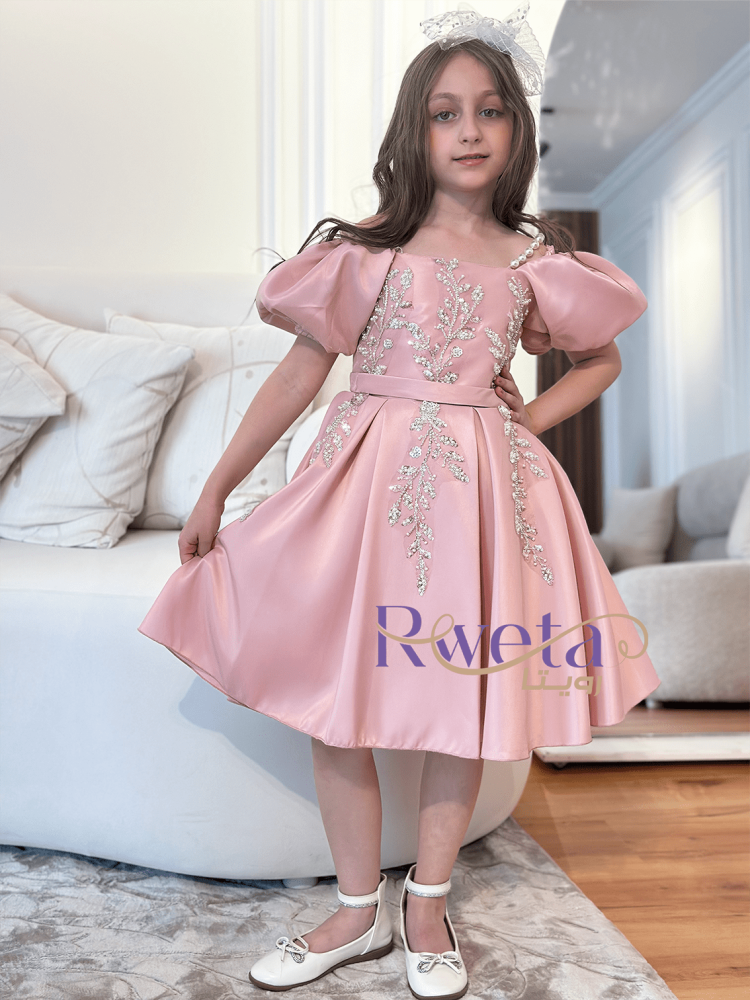 - فستان ريتاج بناتي لون وردي يتميز بتصميم رائع يبرز جمال بنتك ويرفع من مستوى أناقتها.