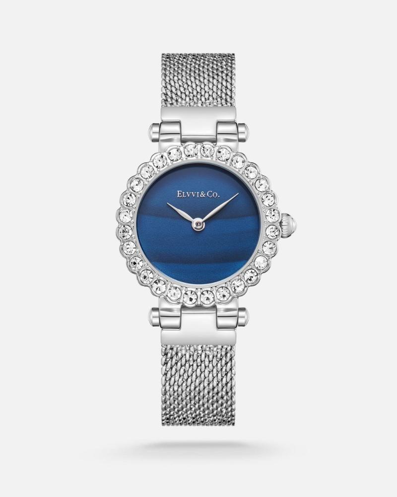 - اللون الفضي مع اللون الكحلي الرائع يضفي لمسة من الجاذبية على الساعة.