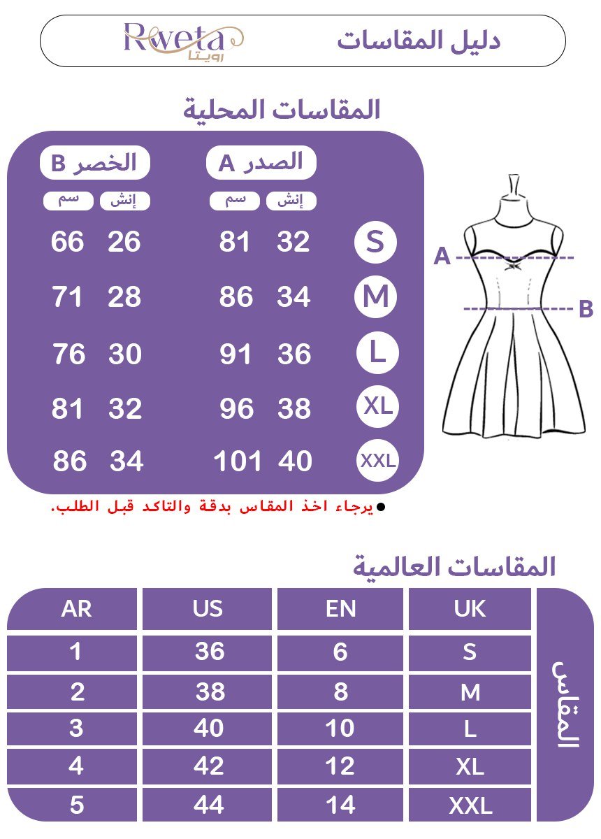 يرجى ملاحظة أن المقاسات الموضحة على المنتجات لدينا هي مقاييس إرشادية مستخدمة بشكل عام