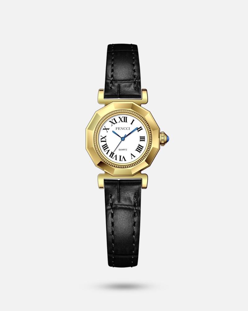 - اسم المنتج : ساعة فينسي النسائية بسير جلد لون ذهبي
